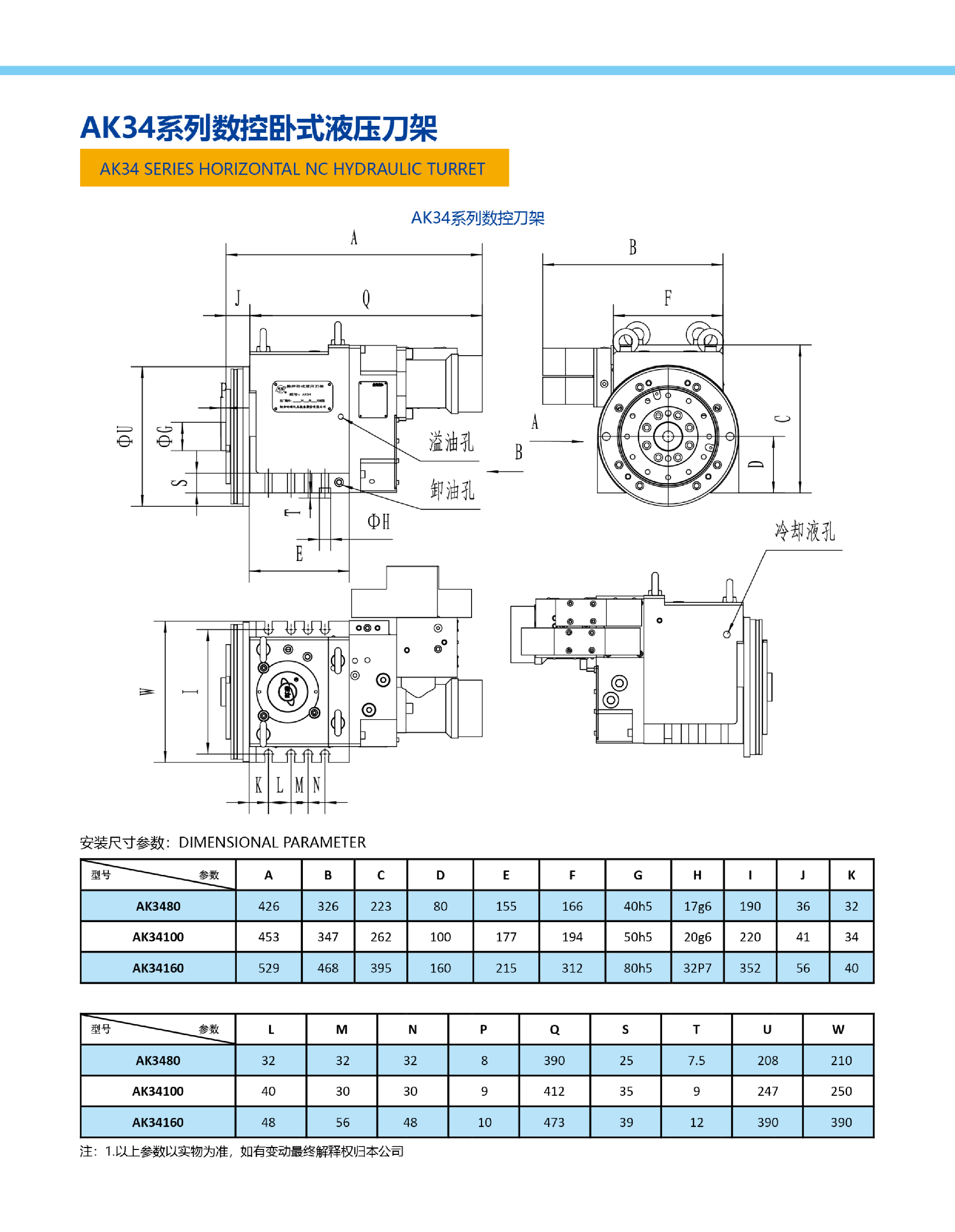 AK34系列數控臥式液壓刀架